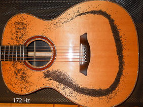 These images show the monopole, cross dipole and long dipole resonance patterns after completion, along with the coupled frequency spectrum. The voicing process for this guitar was easier than previous attempts. Resulting sound is as expected.